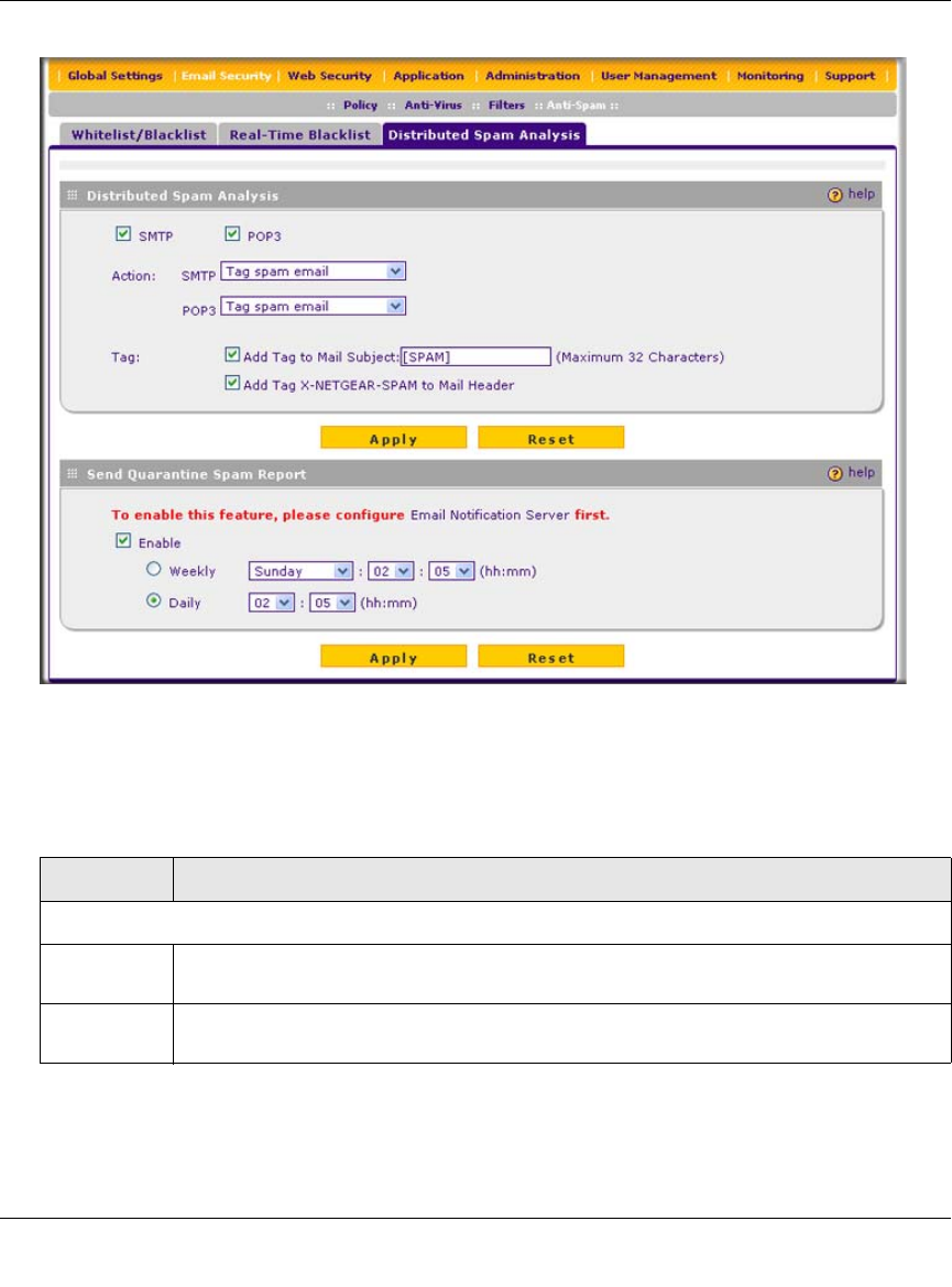 Table 4-8. Distributed Spam Analysis Settings