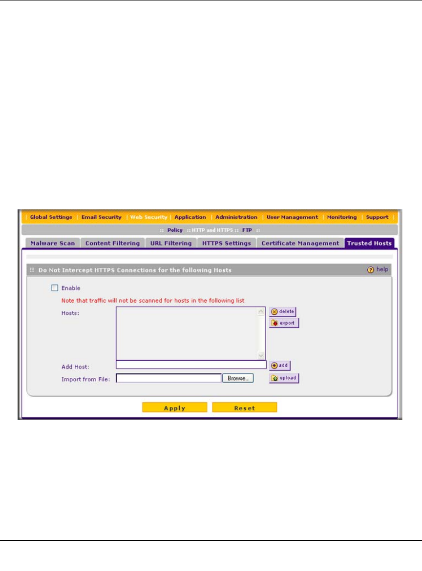 2. Click the Trusted Hosts submenu tab. The Trusted Hosts screen displays.