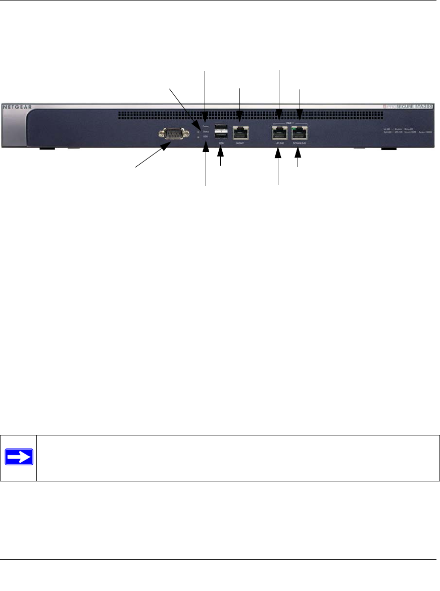 Figure 1-3 shows the front panel ports and LEDs of the STM300.
