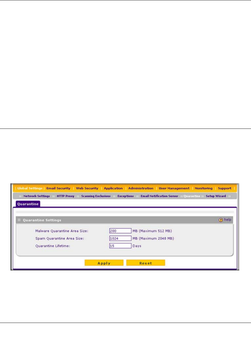 1. Select Global Settings > Quarantine from the menu. The Quarantine screen displays.