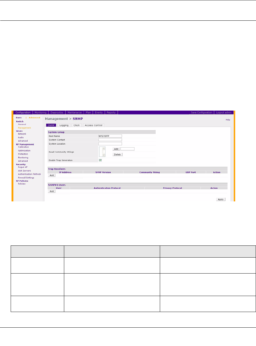 Follow the steps below to configure a WFS709TP’s basic SNMP parameters: