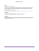 N300 WiFi Range Extender Table 5. Technical specifications (continued) Extender Specifications Environmental • • • Interface • • Operating temperature: 32° to 140°F (0° to 40°C) Operating humidity: 90% maximum relative humidity, noncondensing Electromagnetic emissions: Meets requirements of FCC Part 15 Class B. Local: 10BASE-T, 100BASE-Tx, RJ-45 802.11n, 802.11g, 802.