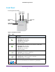 N300 WiFi Range Extender Front Panel The front panel has LEDs. Router Client Arrow Arrow LED LED Router Link LED Client Link LED Power LED WPS LED Figure 1. Extender front panel Table 1. LEDs LED Description Router Link LED The connection between the extender and the router or access point. • Solid green. Best connection. • Solid amber. Good connection. • Solid red. Poor connection. • Off. No connection. Client Link LED The connection between the extender and a computer or mobile device.