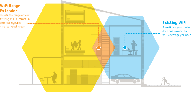 The NETGEAR WiFi Range Extender increases the distance of a WiFi