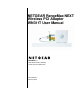 reception, which is found by turning the equipment off and on, the user is encouraged to try to correct the interference by one or more of the following measures: • Reorient or relocate the receiving antenna • Increase the separation between the equipment or devices • Connect the equipment to an outlet other than the receiver’s • Consult a dealer or an experienced radio/TV technician for assistance FCC Caution: Any change or modification to the product not expressly approved by Netgear could void th