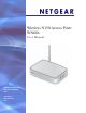 Wireless N150 Access Point WN604 © 2011 NETGEAR, Inc. All rights reserved No part of this publication may be reproduced, transmitted, transcribed, stored in a retrieval system, or translated into any language in any form or by any means without the written permission of NETGEAR, Inc. Technical Support Thank you for choosing NETGEAR.