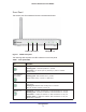 Wireless N150 Access Point WN604 Rear Panel Power Power On/Off LAN ports 1–4 Reset Antenna Figure 2. WN604 rear panel During set up, use an Ethernet RJ-45 port to connect a computer. After initial set up, use an Ethernet port to connect to an Ethernet LAN through a device such as a hub, switch, router, or PoE switch. The Reset button has two functions: • Reboot. When pressed and released quickly, the access point restarts. • Reset to Factory Defaults.