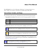 About This Manual The NETGEAR® Wireless-N 300 USB Adapter WNA3100v1 User Manual describes how to install, configure, and troubleshoot the Wireless-N 150 USB Adapter WNA1100v1. Conventions, Formats, and Scope The conventions, formats, and scope of this manual are described in the following paragraphs: • • Typographical conventions.