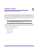Contents Chapter 1 Hardware Setup Unpack Your Router . . . . . . . . . . . . . . . . . . . . . . . . . . . . . . . . . . . . . . . . . . . . . . . . . . 8 Position Your Router . . . . . . . . . . . . . . . . . . . . . . . . . . . . . . . . . . . . . . . . . . . . . . . . . . 8 Prepare the Router . . . . . . . . . . . . . . . . . . . . . . . . . . . . . . . . . . . . . . . . . . . . . . . . . 9 Hardware Features . . . . . . . . . . . . . . . . . . . . . . . . . . . . . . . . . . . . . . . . . . . . . . . .