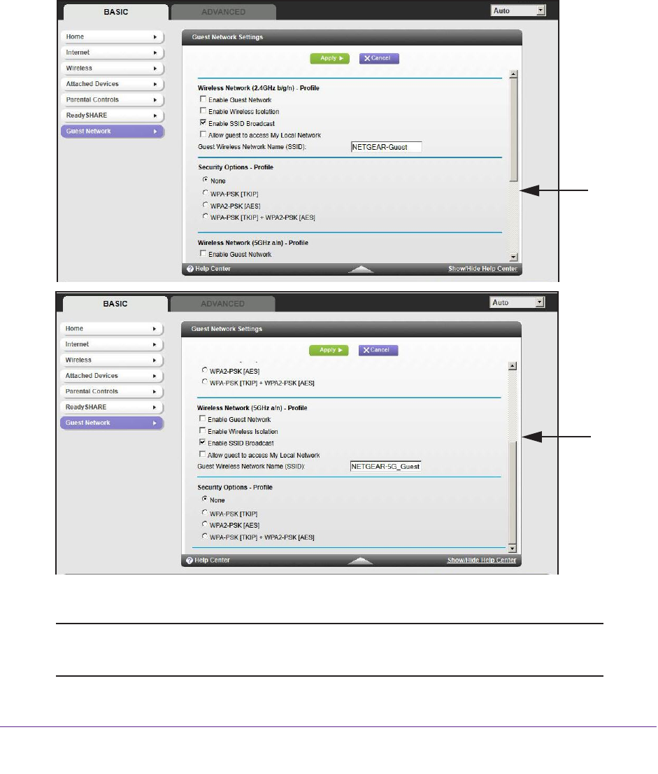 wireless security key. You can add a guest network to each wireless network: 2.4 GHz b/g/n