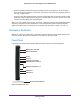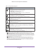 N900 Wireless Dual Band Gigabit Router WNDR4500v2 Table 1. Front panel LED descriptions LED Description Power/Test • • • • • • Solid amber. The router is starting up after being powered on. Solid green. The power is on, and the router is ready. Blinking amber. A firmware update is in progress. Blinking green. The firmware is corrupt. Switching between green and amber. The router is in AP Bridge mode. Off. Power is not supplied to the router. Internet • • • Solid green.