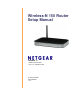 Wireless-N 150 Router Setup Manual NETGEAR, Inc. 350 E. Plumeria Drive San Jose, CA 95134 USA September 2009 208-10465-01 v1.