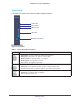N300 Wireless Router WNR2000v4 Table 1. Front panel LED descriptions (continued) LED LAN ports 1–4 WPS Description • • • Solid green. The LAN port has detected a 100 Mbps link with an attached device. Solid amber. The LAN port has detected a 10 Mbps link with an attached device. Off. No link is detected on the LAN port. • • Solid green. Indicates that wireless security is enabled. Blinking green. The router is attempting to use WPS to add a wireless device or computer to the wireless network.