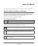 About This Manual This section describes the intended audience, scope, conventions, and formats of this manual. Audience, Scope, Conventions, and Formats This reference manual assumes that the reader has basic to intermediate computer and Internet skills. However, basic computer network, Internet, firewall, and VPN technologies tutorial information is provided in the Appendices and on the Netgear website. This guide uses the following typographical conventions: Table 1.