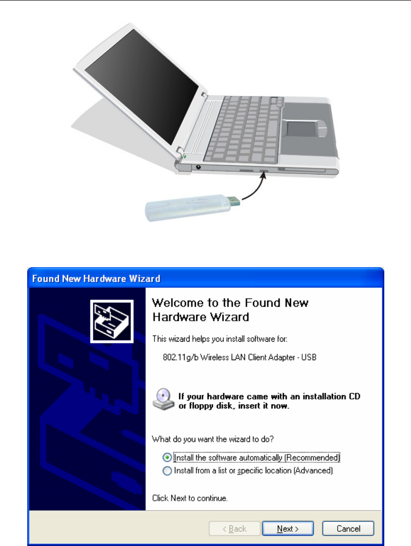 z If the Found New Hardware Wizard displays, choose install the software automatically