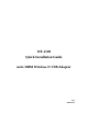 300M Wireless-N USB Adapter Quick Installation Guide 1. Check Your Package Contents The following items should be found in your package: ¾ 300M Wireless-N USB Adapter ¾ Quick Installation Guide ¾ CD-ROM Make sure that the package contains above items. If any of the above items is missing or damaged, please contact the store you bought this product from. 2. Before Your Begin Minimum Requirements: ¾ Available USB 1.1 or USB 2.0 slot ¾ 300 MHz processor and 32 MB of memory ¾ CD-ROM drive ¾ An 802.