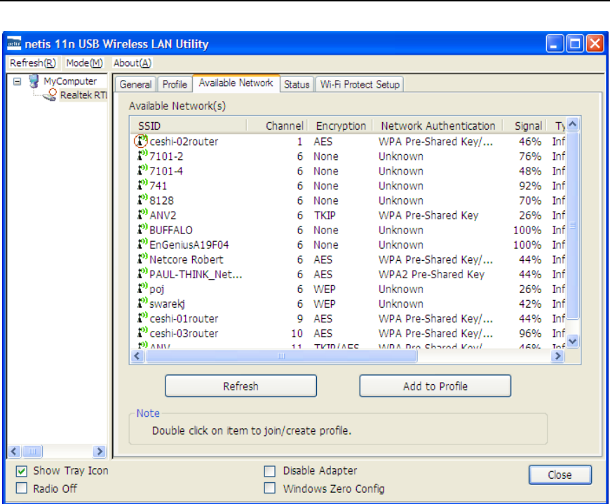 Double-click the network to which you wish to connect.