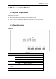WF-2403 User Manual Package Contents The following items should be found in your package: WF-2403 Portable 300Mbps Wireless-N Router/AP Power adapter Quick Installation Guide CD-Rom Ethernet cable Make sure that the package contains above items. If any of the above items is missing or damaged, please contact the store you bought this product from. Brand and Copyright Announcement Copyright © 2010 Netis Corporation. All rights reserved is a registered trademark of Netis Corporation.