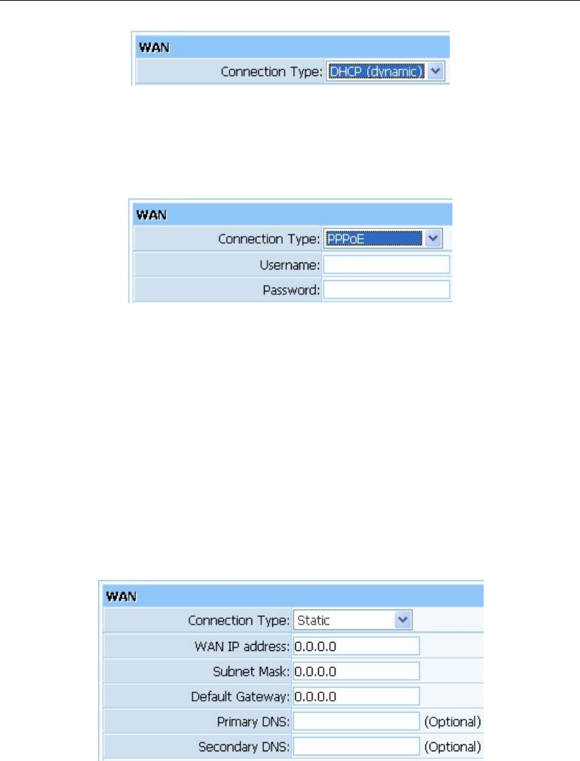 should input your “WAN IP address”, ”subnet mask”,” default gateway” and “DNS server