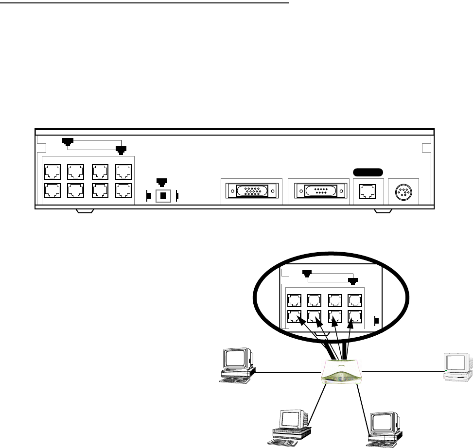 You can connect a standard 10Base-T Ethernet network to the Netopia D-Series using any of its available