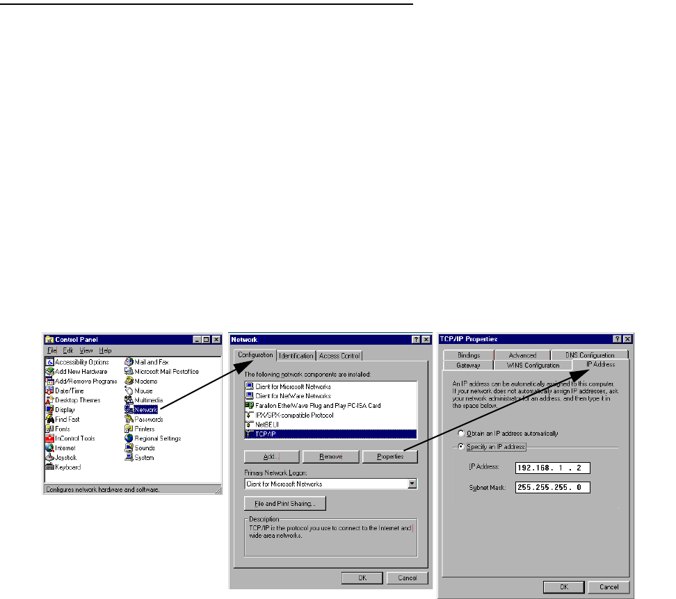 2. Select TCP/IP-->Your Network Card. Then select Properties. In the TCP/IP Properties screen (shown