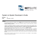 System-to-System Developer’s Guide v3.0 2 IMPLEMENTATION OVERVIEW 2.1 SUPPORTED PLATFORMS AND NETSUITE DEVELOPMENT SUPPORT While our integration technology to establish System-to-System connectivity is based on standards and can be used from any development platform, NetSuite officially supports the following two development platforms. • Java platform • Microsoft .