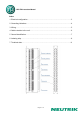 NPP-TB Instruction Manual Index 1. Electrical configuration.................................................................................................3 2. Grounding Variations ...................................................................................................4 3. Wiring ..........................................................................................................................5 4. Cable retention to the unit................................................................