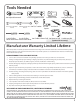 Tools Needed 1 x Adjustable wrench 1 x 12” Magnetic Leveler 1 x Stud Finder 1 x Tape Measure 3 2 1 1 1 x 7/16” Socket driver wrench 1 x 8mm” Socket driver 1 x 7/16” socket wrench 2 3 1 x Set Square 1 x Pencil 1 x #2 Phillips Bit 1 x Cordless Power Drill 1 x Hammer Drill 1 x Masonry Bit 1 x #2 Phillips 1 x #3 Phillips head screw driver head screw driver [optional for masonry] Manufacturer Warranty Limited Lifetime When this product is installed, operated and maintained according to the instruct