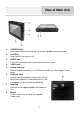 View of Main Unit 1. POWER Button Press power button to turn on the unit or exist standby or power off mode. 2. Card Slot Insert the SD card into the slot. 3. RESET Hole Press the reset button with a metal pin to reset the system. 4. LCD Screen 5. Charge Indicator 6. When charging the battery, it is red. When the battery is fully charged, it turns green. Earphone Jack Used to connect earphones for private listening.