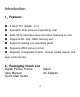 Content Warning .......................................................................1 Safety precaution .......................................................1 Introduction ................................................................4 1、Features..........................................................4 2、Packaging Check List .....................................4 3、Specifications ..................................................5 Product Diagram & Function ....................................