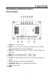 Key Features and Remote Control Key Functions: 1. POWER: Turn the device on/off. 2. ENTER: Press this button once to play the selected file. Press the button again and the display will return to the Root Menu. 3. PHOTO: Press this button to select the「PHOTO」 Mode available on the main menu. 4. MOVIE: Press this button to enter the 「VIDEO」Mode. 5. MUSIC: Press this button to enter the 「MUSIC」Mode. 6. A/V OUT: AV output Interface to connect to a 2-channel audio amplifier or a TV set. 7.