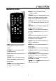 Remote Control MOVIE: Press this button to enter 「VIDEO」Mode. REPEAT: Press this button to activate all modes of the Repeat feature (chapter repeat, title repeat, folder repeat, etc.) 16:9/4:3: Press this button to choose the TFT LCD aspect ratios between 4:3 and 16:9. ROTATE: Press this button to adjust the viewing angle of the pictures. ZOOM: Press this button to enlarge the picture in increments of 2, 3, 4, 1/2, 1/3, 1/4, OFF.