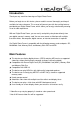 Introduction Thank you very much for choosing our Digital Photo Frame. Before you begin to use this device, please read this manual thoroughly and keep it available for future reference. This manual will present you with the exciting features provided by our Digital Photo Frame, which allows you to enjoy unbelievably amazing visual & audio experience. With our Digital Photo Frame, you can easily and quickly view photos directly from your digital camera’s memory card.