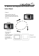 Remote Control ZOOM: Press this button to enlarge the picture in increments of 2, 3, 4, 1/2, 1/3, 1/4, OFF. (Note: before you use the remote control, please remove the plastic strips.) SLIDE SHOW: Press this button to view the pictures one by one automatically. STANBY: Press this button to turn the device on/off. VIEW: Press this button to turn on the OSD: Show file display status 9-picture-view function, displaying 9 SAVE PHOTO: Play pictures from small pictures for navigation.