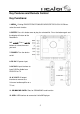 SETUP: Press this button to display the device’s setup menu. MOVIE: Press this button to enter「VIDEO」Mode. MUSIC: Press this button to enter the Music Playback Mode. CLOCK: Press this button to setup the time and the calendar. : Press this button once to freeze the playback picture. : Press this button once to halt playback (pre-stop). Press the button again to : Press “ ” to return to the previous title/chapter/track/picture. : Press “ ” to skip ahead to the next title/chapter/track/picture.