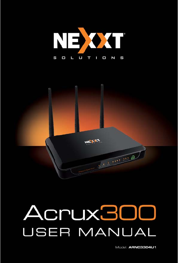 Nexxt Solutions - ACRUX - Wireless N Gigabit Router Copyright Statement Nexxt Solutions™ is a registered trademark. Other trademarks or brand names contained herein are the trademarks or registered brand names of their respective owners. Copyright of the whole product as integration, including its accessories and software, belongs to Nexxt Solutions Ltd.