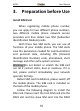 MITO User Manual Contents 1. 2. 3. For your Safety ............................ 5 Mobile Phone Profile .................. 8 Preparation before Use ............. 10 Install SIM Card ...................................... 10 Install Memory card ............................... 12 Install Battery ......................................... 13 Charge Battery........................................ 14 Notices on using the battery .................. 15 PIN code .................................................