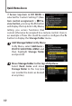 Quick Menu Access If Access top item in MY MENU is selected for Custom Setting f1 (Cus‑ tom control assignment) > 0 Pre‑ view button, pressing the Pv button will display the top item in My Menu, letting you access functions that cannot otherwise be assigned to a camera control. Here is an example of how this could be used to configure the Pv button to display the Storage folder menu. 10 1 Add Storage folder to My Menu.