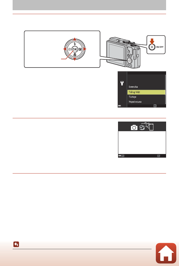 3 Khi được nhắc cài đặt đồng hồ máy ảnh, hãy nhấn HI để chọn
