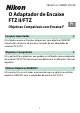 D Objetivas e Acessórios Incompatíveis As seguintes objetivas e acessórios não podem ser utilizados com o adaptador de encaixe FTZ II/FTZ. Tentar montar qualquer um destes equipamentos à força pode danificar o adaptador ou a objetiva. A variação individual pode tornar incompatíveis as objetivas diferentes das enumeradas abaixo; não use força se encontrar resistência ao tentar montar uma objetiva. • Objetivas não AI • PC 35 mm f/2.