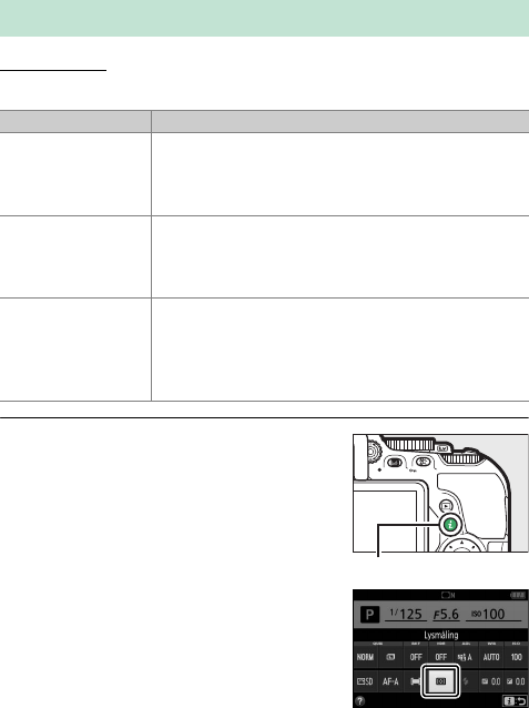 1 Få vist lysmålingsindstillingerne.