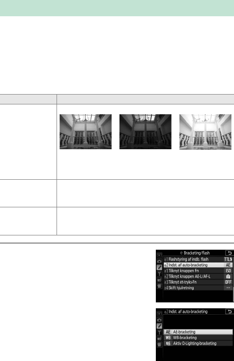 Bracketing varierer automatisk indstillingerne for eksponering,
