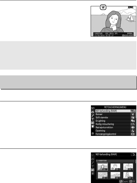 1 Vælg NEF-behandling (RAW).