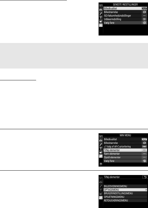 A Fjernelse af elementer fra menuen Seneste Indstillinger