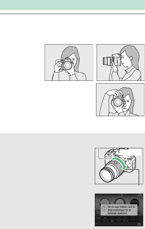 Når du komponerer billeder i søgeren, skal du holde grebet i