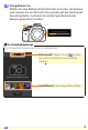 3 Tippen Sie auf das Verschlusssymbol. Der Verschluss wird ausgelöst, nachdem Sie Ihren Finger vom Symbol nehmen; das so entstandene Foto wird zunächst auf der Speicherkarte der Kamera gespeichert und anschließend auf das Smartgerät heruntergeladen. Das Smartgerät muss nicht auf den Funkadapter für mobile Geräte gerichtet werden. D Ferngesteuerte Fotografie Die ferngesteuerte Fotografie wird automatisch beendet, wenn der Akku in der Kamera oder im Smartgerät fast leer ist.