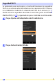 Opciones de Wireless Mobile Utility Para acceder a las opciones que se indican a continuación, puede hacer lo siguiente: • mantener pulsado el botón “atrás” del dispositivo inteligente y seleccionar Ajustes en el menú que aparece, o • tocar el icono c en la esquina superior derecha de la pantalla. Ajustes Opción Descripción Sincronizar reloj Seleccione si desea sincronizar el reloj de la cámara con el dispositivo inteligente.