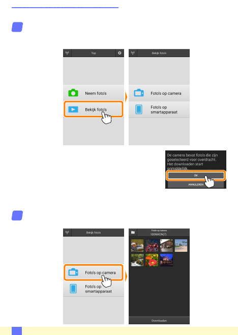Tik op Foto´s op camera om de foto’s op de camera te bekijken.