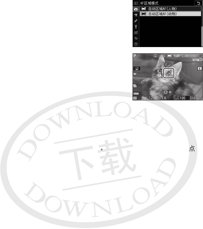 对焦于动物的脸部或眼部 (动物侦测自动对焦)