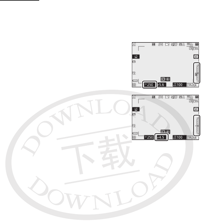 您可旋转指令拨盘根据曝光指示调整快门速度和光圈。